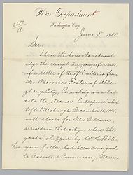 Letter from John Tweedale of War Department to unknown (probably Morrison Foster)